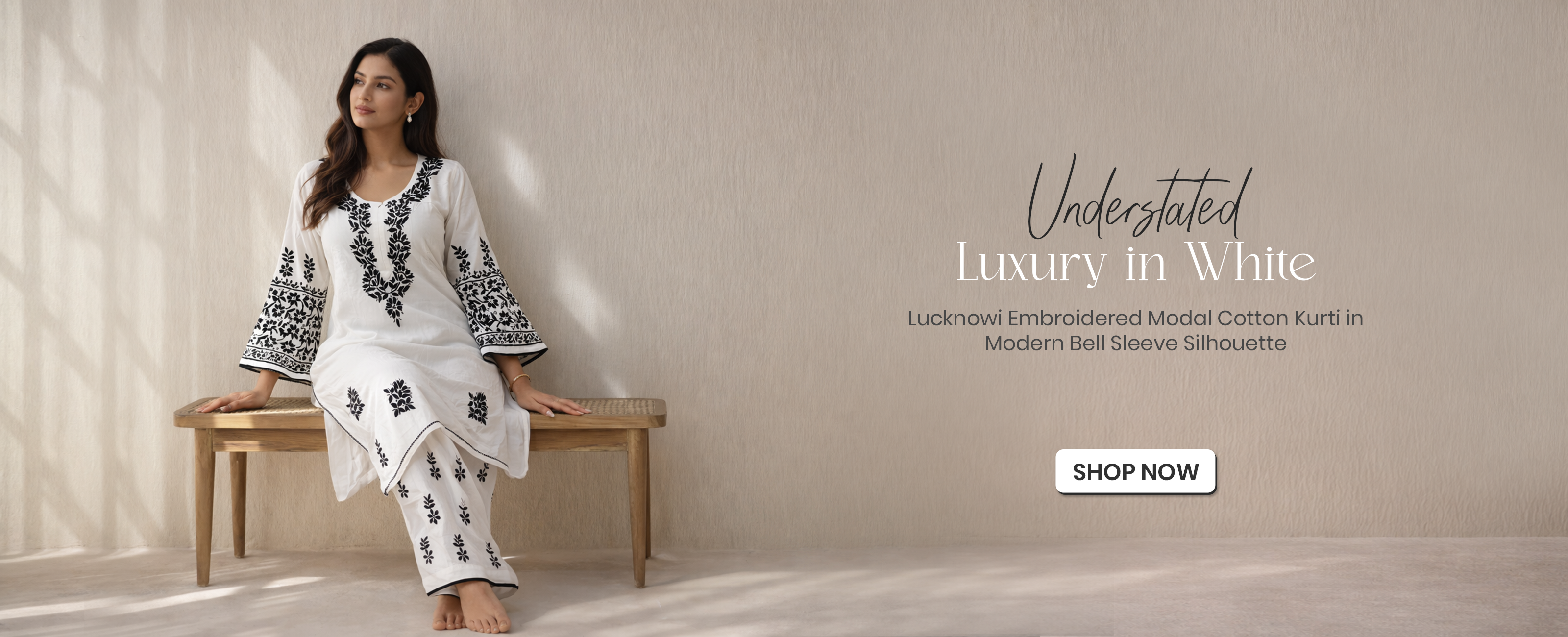 Lucknowi white kurti cotton long